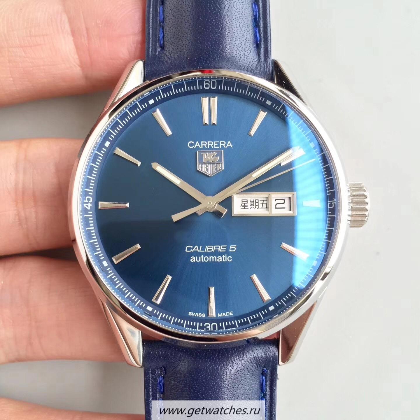 Copy Tag Heuer Carrera Calibre 5 Day-Date 41mm WAR201E.FC6292 HBB V6F SS Blue Dial Calibre 5
